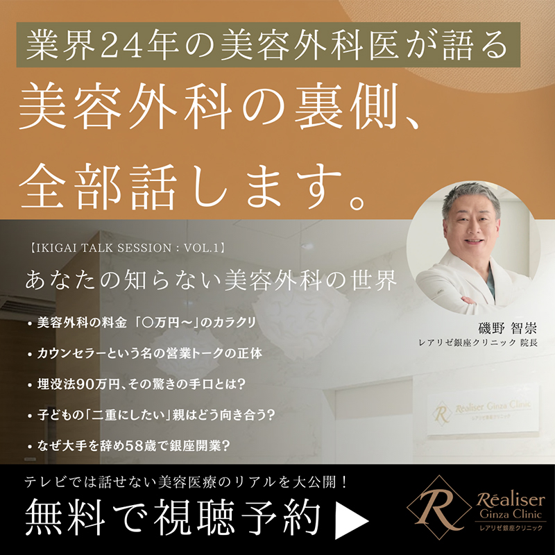 タイトルは 「IKIGAI TALK SESSION——美容外科の裏側、全部話します。あなたの知らない『美容外科』の世界」 です。